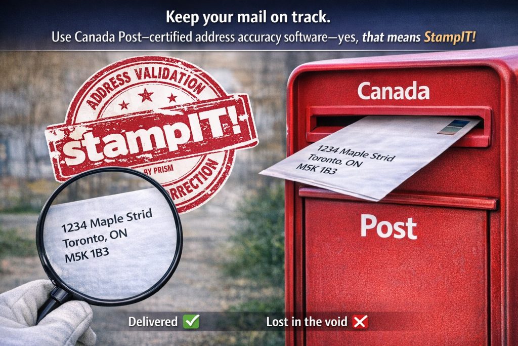 StampIT! by Prism is a Canada Post–certified address accuracy solution that validates, corrects, and standardizes your address data before anything goes out the door. The result is simple: