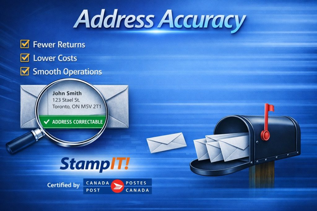 When it comes to mailing, accuracy isn’t optional — it’s essential. Every incorrect or incomplete address leads to wasted time, added costs, and frustrated customers. That’s why businesses across Canada are turning to StampIT!, a Canada Post–certified solution designed to validate and correct addresses before mail ever leaves your hands.